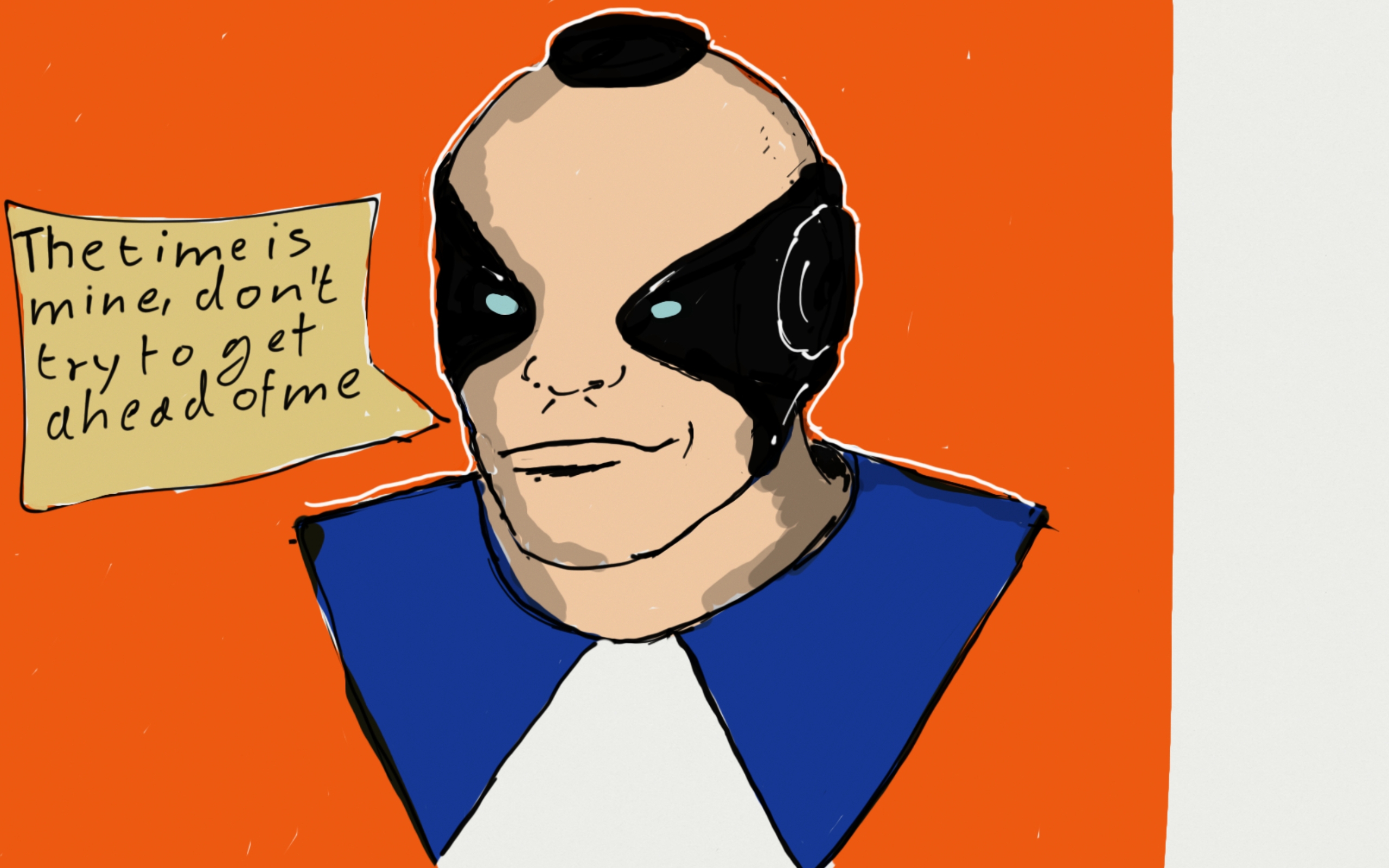 Timeshifter, er ist der Zeit voraus. Es ist unmöglich, ihm zuvorzukommen. Timeshifter he is ahead of his time. It is impossible to preempt him.
